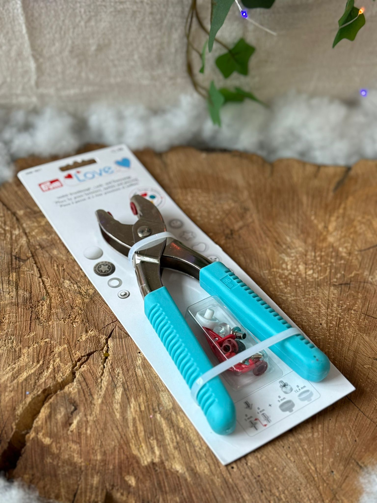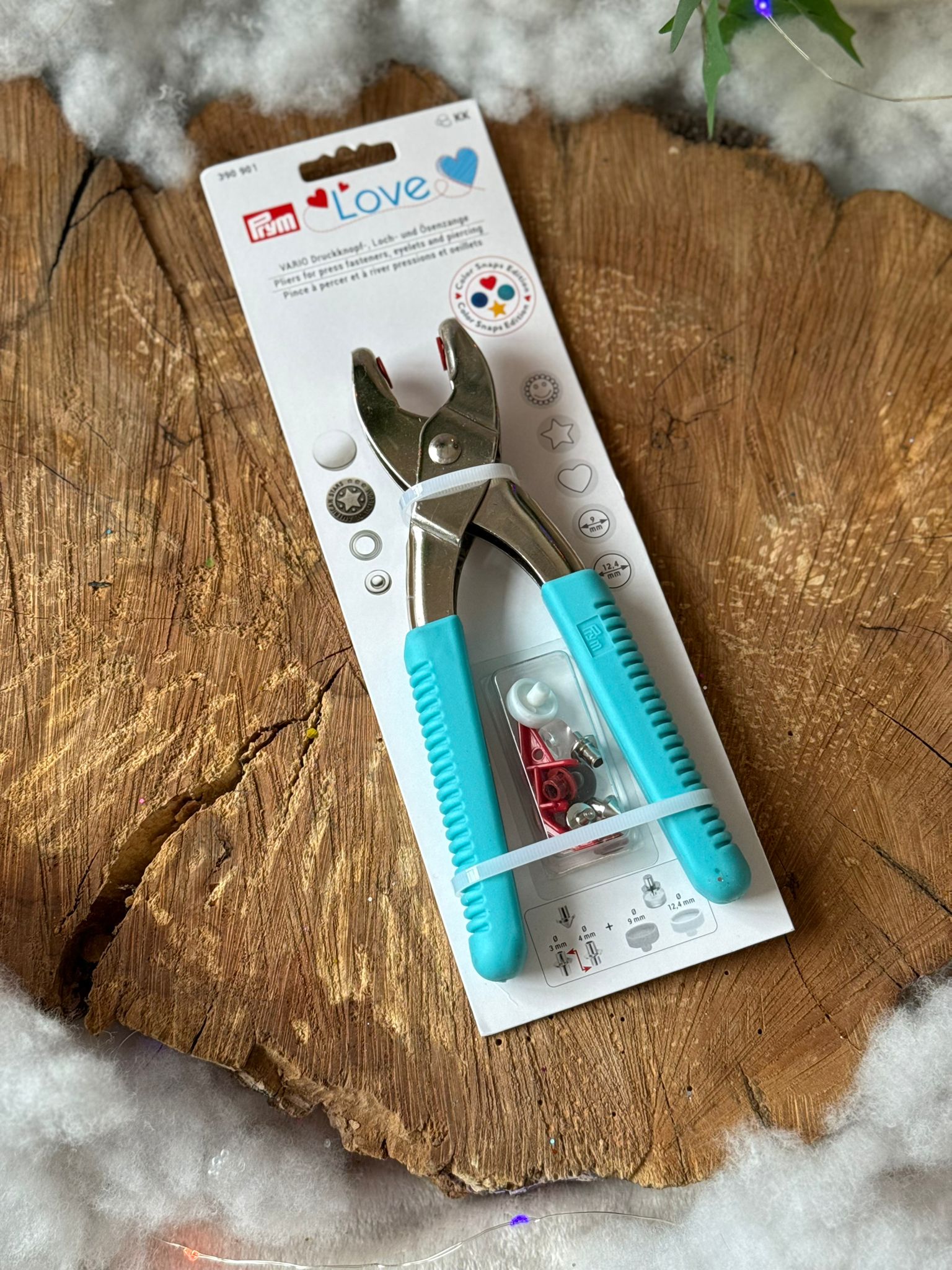 Diese hochwertige Prym VARIO Zange aus der „Love“-Kollektion ist nicht nur ideal zum Lochen und Anbringen von Druckknöpfen, Ösen und Nieten – sie eignet sich mit den passenden Aufsätzen auch perfekt zum sicheren Befestigen von Sicherheitsaugen an Kuscheltieren, Amigurumis und Puppen.